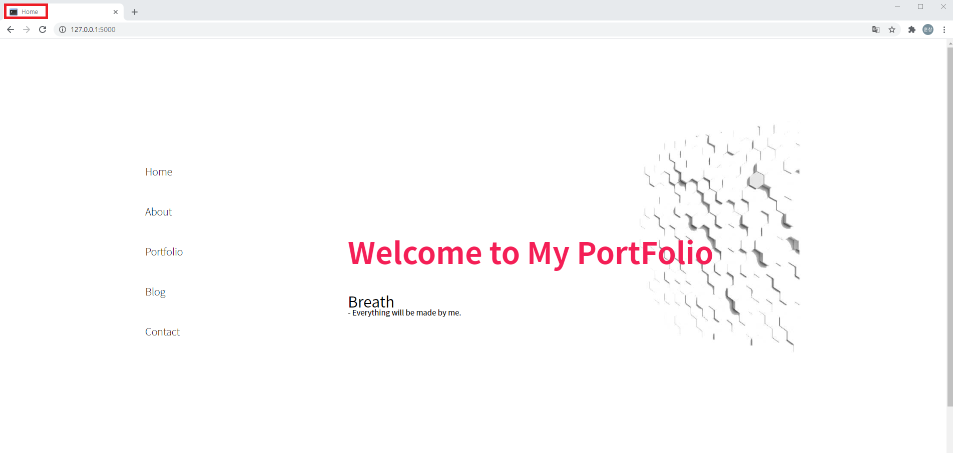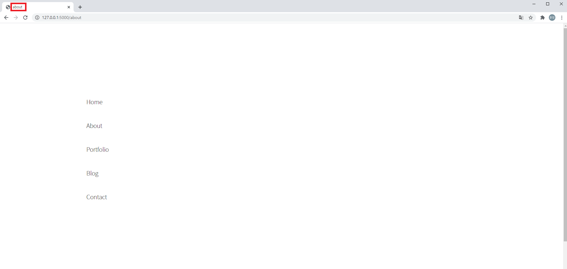 - 서버 index() 함수에서 render_template() title변수 값으로 Home을 대입합니다.