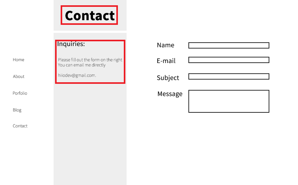 - form 은 Name / E-mail / subject / Message로 나뉘어져 있습니다.