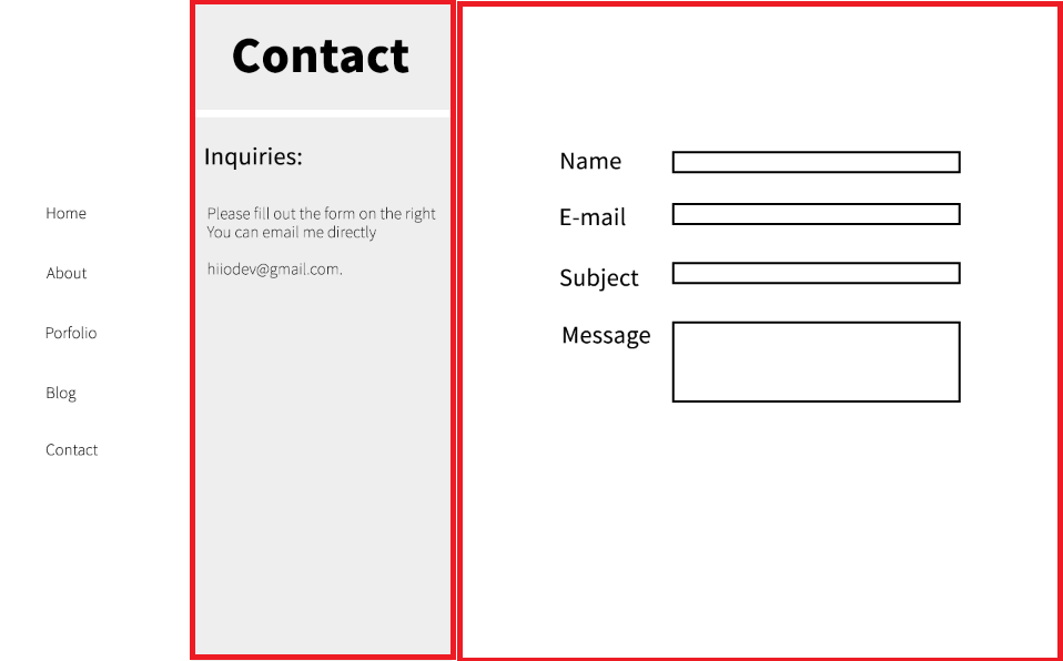 - contact 페이지는 아래의 그림과 같이 크게 2부분으로 나뉩니다.