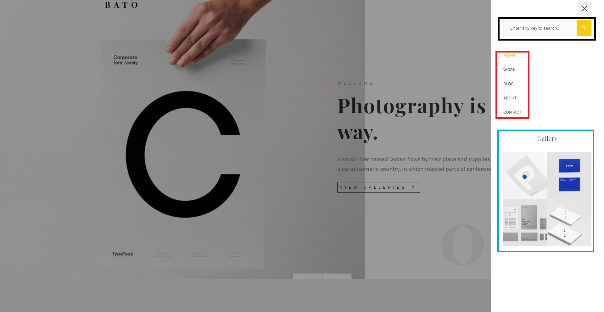 제일 위에는 검색 창 - 메뉴 - 갤러리 순으로 배열이 되어있습니다.