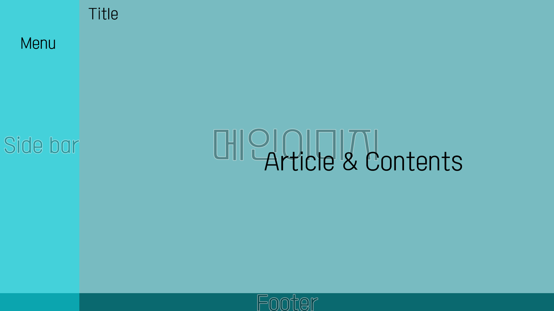 이런 Layout에는 Title이 좌측 상단에 오게 되고, Sidebar에는 Navigation역할을 하게될 Menu 부분이 Main image위로는 간략한 설명이 들어가는 Article 과 contents가 배치됩니다.