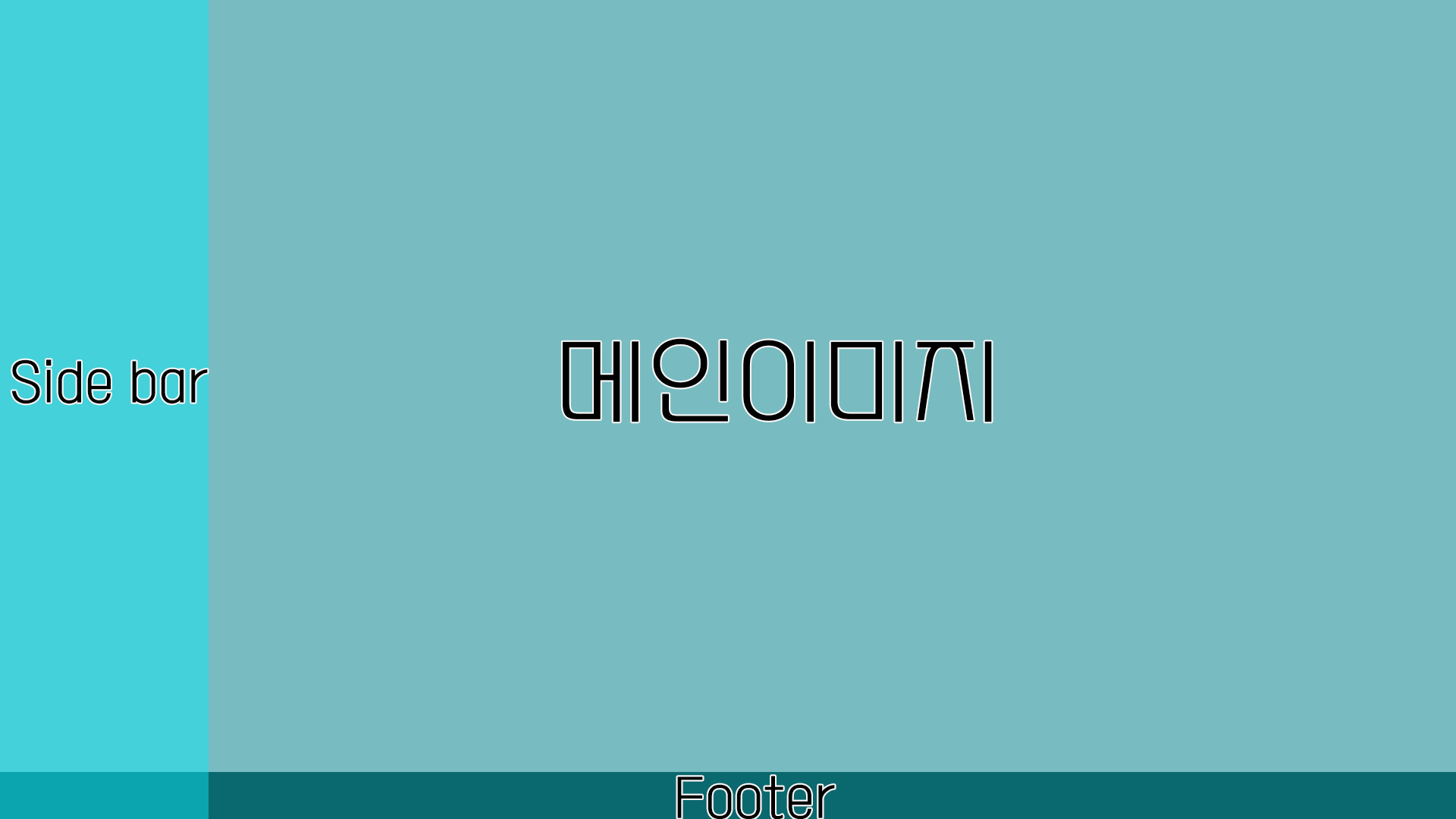 위의 레이아웃 처럼 전체적으로 메인이미지가 오고 , 그 및으로는 Footer부분이 좌측 으로는 toggle을 이용한 side bar가 숨겨져 있다가 나타나는 것입니다.