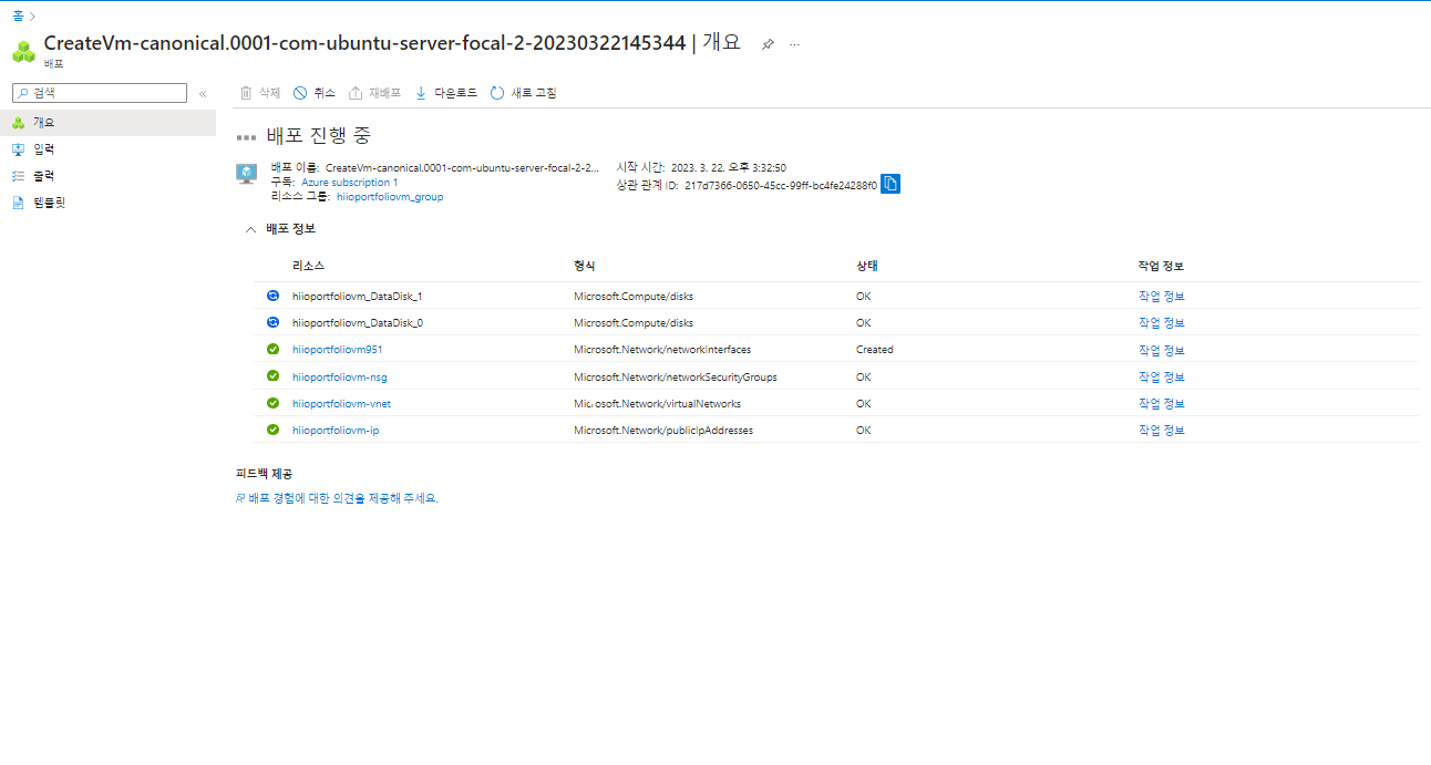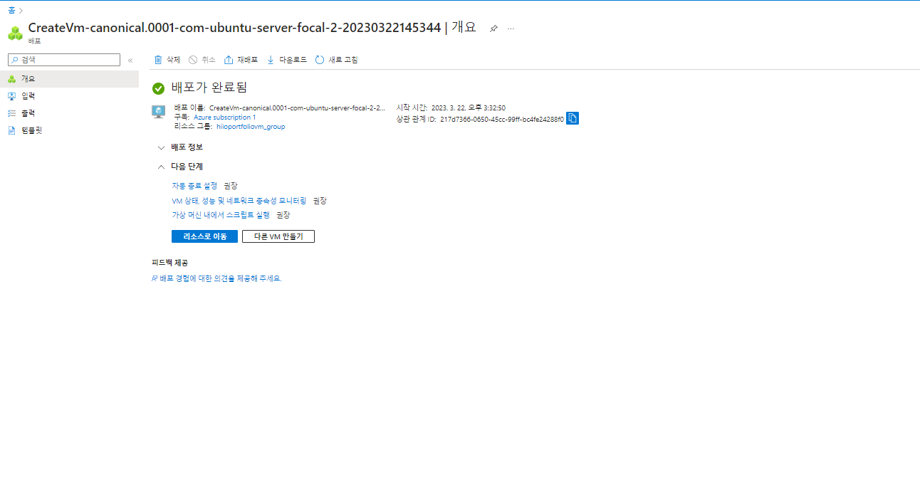 고급 - 태그 는 그냥 넘어가고 만들기를 클릭해주면 VM 이 만들어 지고 배포 진행 단계로 넘어 갑니다.