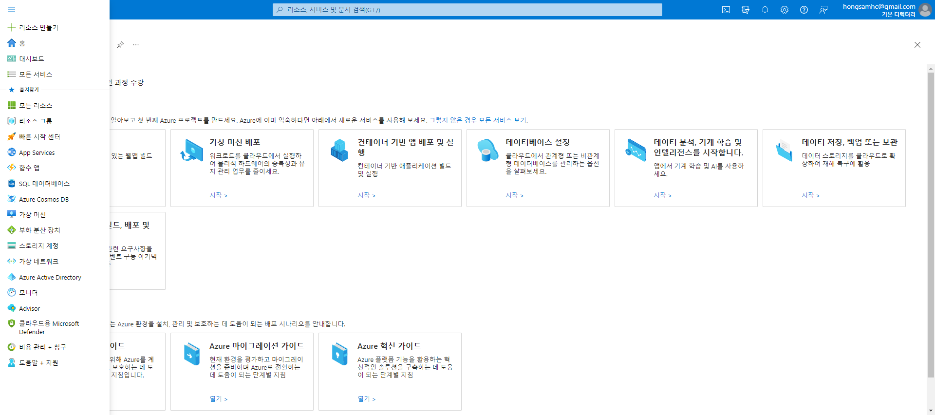 계정이 생성되면, Azure Portal로 이동합니다.