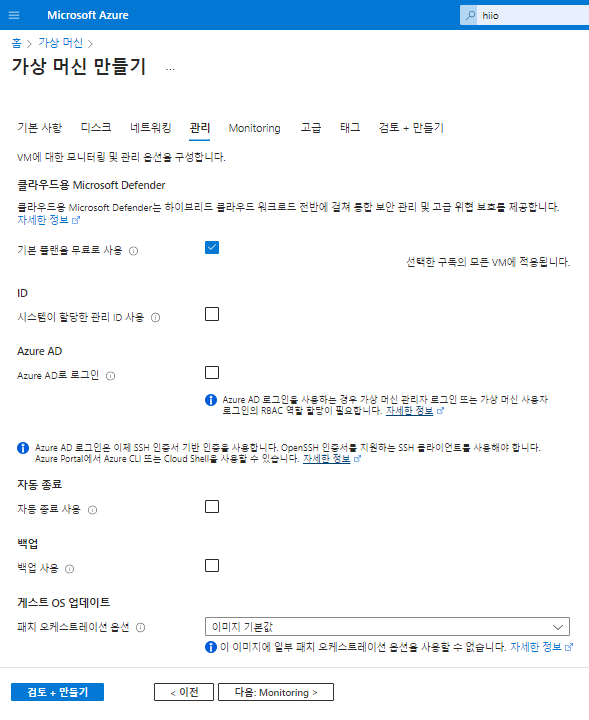 관리의 경우 기본 설정 그대로 했습니다.