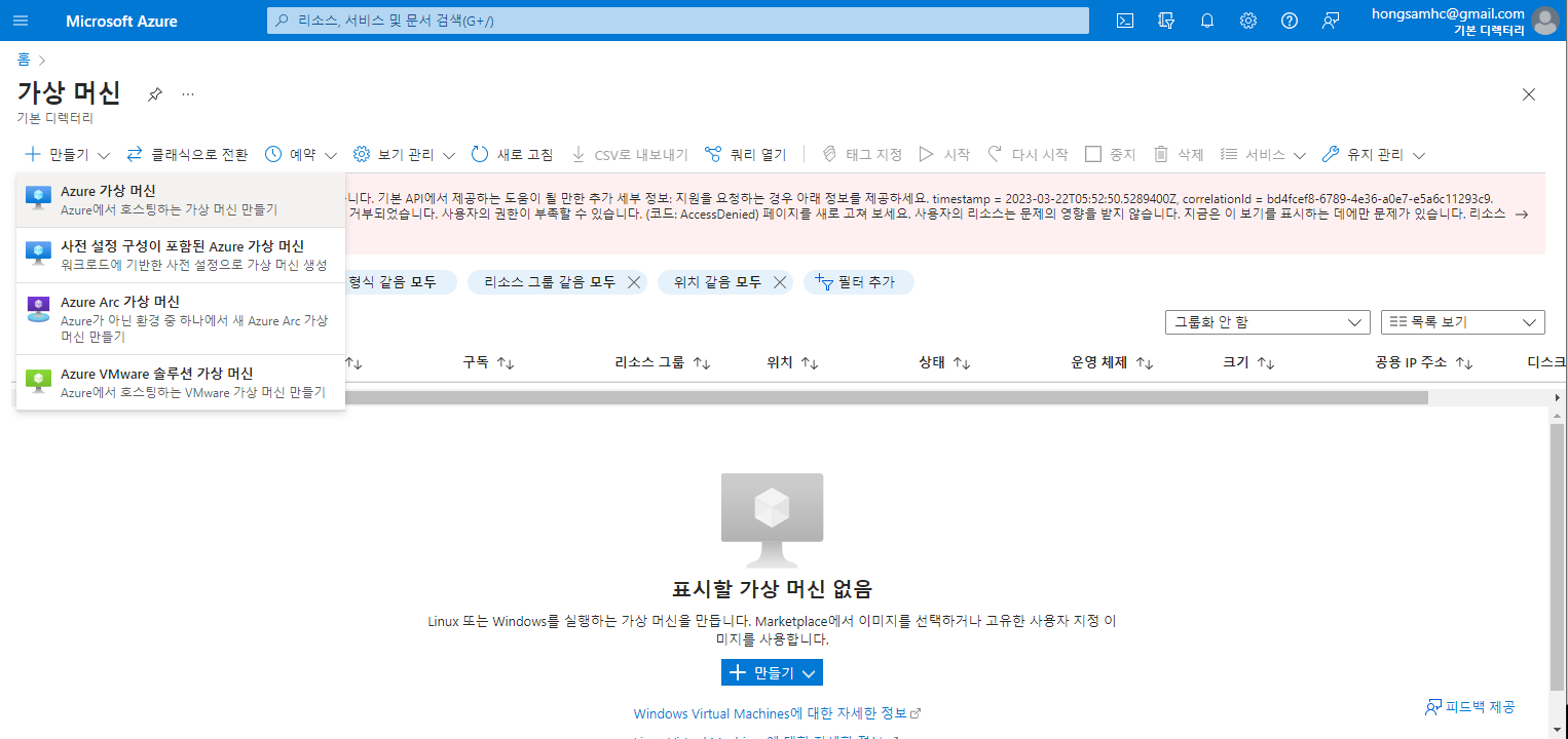 이동한 Portal에서 가상머신 만들기를 선택해 줍니다.